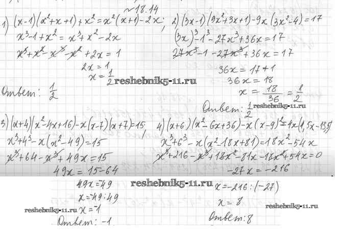 Готовая домашняя работа с ответами по Алгебре за 7 класс Мерзляк, Поляков Учебник Алгоритм успеха Углубленный уровень Вентана-граф 2019 ФГОС - §18. Сумма и разность кубов двух выражений 18.14