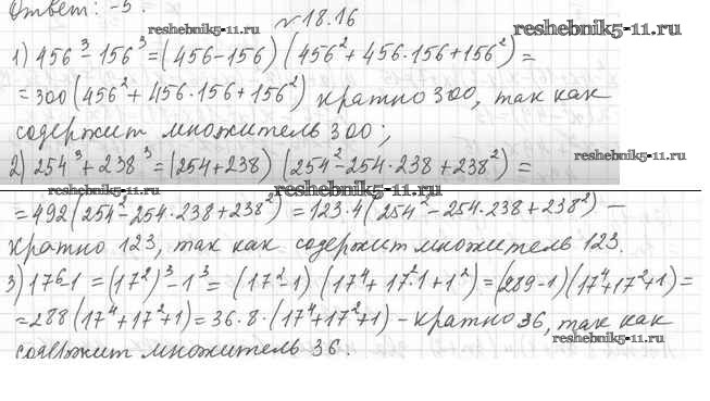 Готовая домашняя работа с ответами по Алгебре за 7 класс Мерзляк, Поляков Учебник Алгоритм успеха Углубленный уровень Вентана-граф 2019 ФГОС - §18. Сумма и разность кубов двух выражений 18.16
