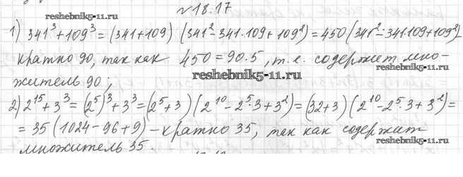 Готовая домашняя работа с ответами по Алгебре за 7 класс Мерзляк, Поляков Учебник Алгоритм успеха Углубленный уровень Вентана-граф 2019 ФГОС - §18. Сумма и разность кубов двух выражений 18.17