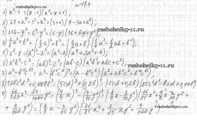 Готовая домашняя работа с ответами по Алгебре за 7 класс Мерзляк, Поляков Учебник Алгоритм успеха Углубленный уровень Вентана-граф 2019 ФГОС - §18. Сумма и разность кубов двух выражений 18.4