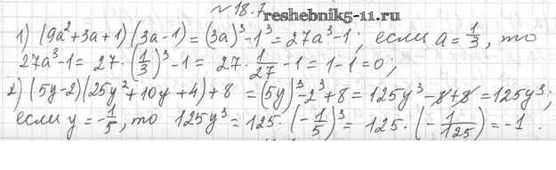Готовая домашняя работа с ответами по Алгебре за 7 класс Мерзляк, Поляков Учебник Алгоритм успеха Углубленный уровень Вентана-граф 2019 ФГОС - §18. Сумма и разность кубов двух выражений 18.7