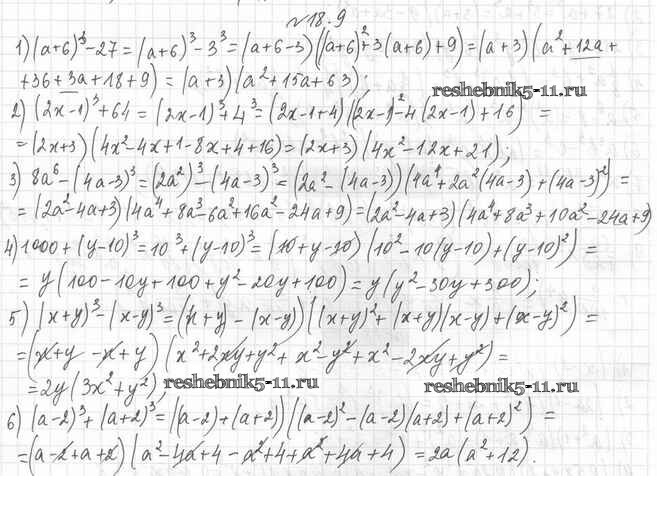 Готовая домашняя работа с ответами по Алгебре за 7 класс Мерзляк, Поляков Учебник Алгоритм успеха Углубленный уровень Вентана-граф 2019 ФГОС - §18. Сумма и разность кубов двух выражений 18.9