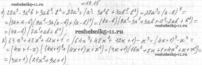 Готовая домашняя работа с ответами по Алгебре за 7 класс Мерзляк, Поляков Учебник Алгоритм успеха Углубленный уровень Вентана-граф 2019 ФГОС - §19. Куб суммы и куб разности двух выражений 19.15
