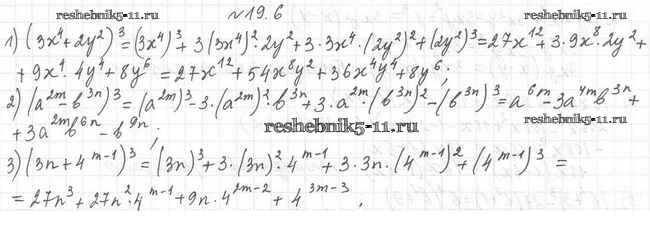 Готовая домашняя работа с ответами по Алгебре за 7 класс Мерзляк, Поляков Учебник Алгоритм успеха Углубленный уровень Вентана-граф 2019 ФГОС - §19. Куб суммы и куб разности двух выражений 19.6