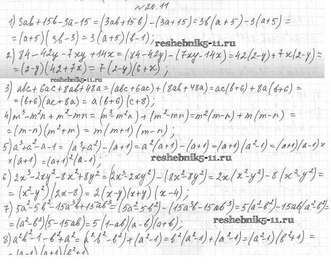 Готовая домашняя работа с ответами по Алгебре за 7 класс Мерзляк, Поляков Учебник Алгоритм успеха Углубленный уровень Вентана-граф 2019 ФГОС - §20. Применение различных способов разложения многочлена на множители 20.11
