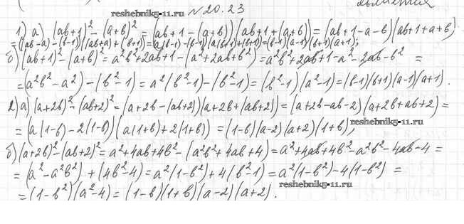 Готовая домашняя работа с ответами по Алгебре за 7 класс Мерзляк, Поляков Учебник Алгоритм успеха Углубленный уровень Вентана-граф 2019 ФГОС - §20. Применение различных способов разложения многочлена на множители 20.23