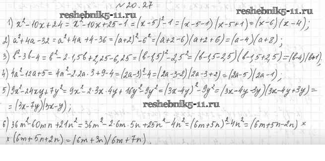 Готовая домашняя работа с ответами по Алгебре за 7 класс Мерзляк, Поляков Учебник Алгоритм успеха Углубленный уровень Вентана-граф 2019 ФГОС - §20. Применение различных способов разложения многочлена на множители 20.27