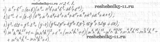 Готовая домашняя работа с ответами по Алгебре за 7 класс Мерзляк, Поляков Учебник Алгоритм успеха Углубленный уровень Вентана-граф 2019 ФГОС - §21. Формулы для разложения на множители выражений вида a^n-b^n и a^n+b^n 21.2
