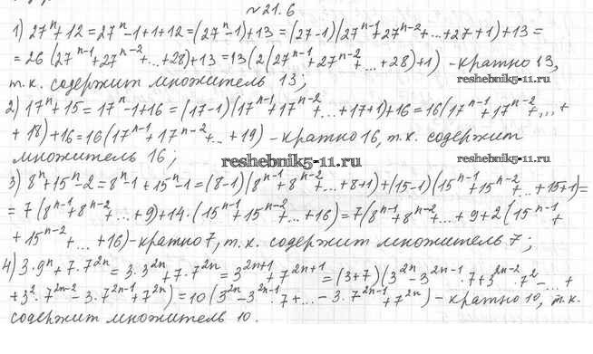 Готовая домашняя работа с ответами по Алгебре за 7 класс Мерзляк, Поляков Учебник Алгоритм успеха Углубленный уровень Вентана-граф 2019 ФГОС - §21. Формулы для разложения на множители выражений вида a^n-b^n и a^n+b^n 21.6