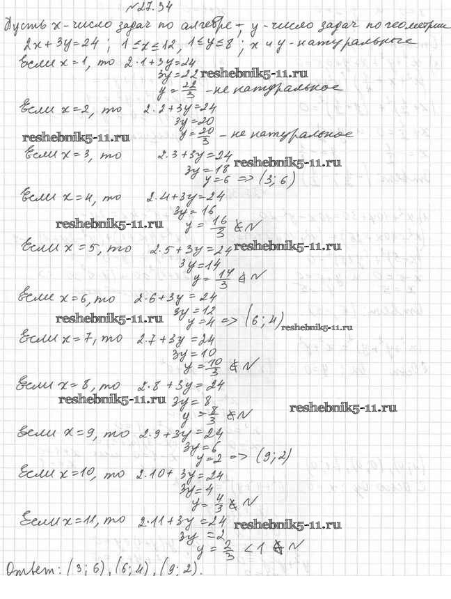 Готовая домашняя работа с ответами по Алгебре за 7 класс Мерзляк, Поляков Учебник Алгоритм успеха Углубленный уровень Вентана-граф 2019 ФГОС - §27. Уравнения с двумя переменными 27.34