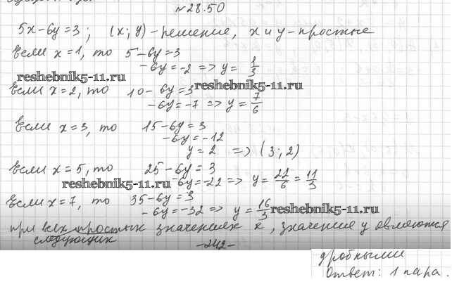 Готовая домашняя работа с ответами по Алгебре за 7 класс Мерзляк, Поляков Учебник Алгоритм успеха Углубленный уровень Вентана-граф 2019 ФГОС - §28. Линейное уравнение с двумя переменными и его график 28.50