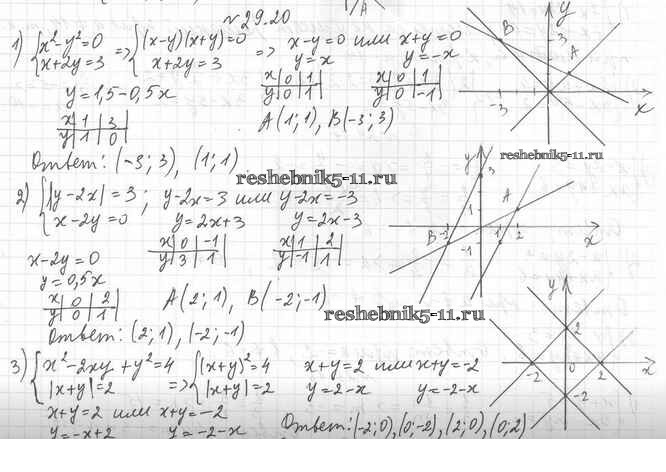 Готовая домашняя работа с ответами по Алгебре за 7 класс Мерзляк, Поляков Учебник Алгоритм успеха Углубленный уровень Вентана-граф 2019 ФГОС - §29. Системы уравнений с двумя переменными. Графический метод решения системы двух линейных уравнений с двумя переменными 29.20