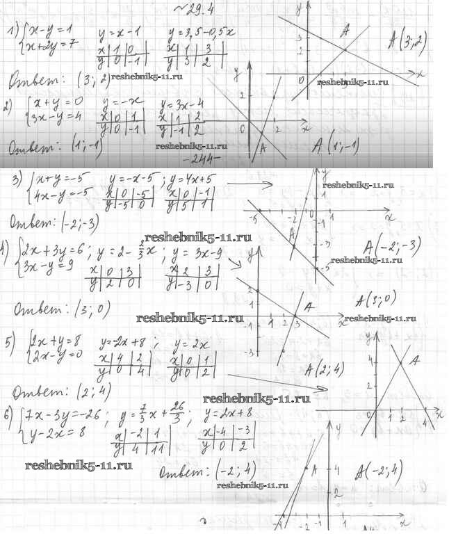 Готовая домашняя работа с ответами по Алгебре за 7 класс Мерзляк, Поляков Учебник Алгоритм успеха Углубленный уровень Вентана-граф 2019 ФГОС - §29. Системы уравнений с двумя переменными. Графический метод решения системы двух линейных уравнений с двумя переменными 29.4