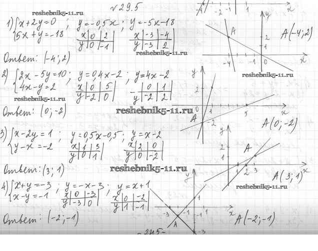 Готовая домашняя работа с ответами по Алгебре за 7 класс Мерзляк, Поляков Учебник Алгоритм успеха Углубленный уровень Вентана-граф 2019 ФГОС - §29. Системы уравнений с двумя переменными. Графический метод решения системы двух линейных уравнений с двумя переменными 29.5