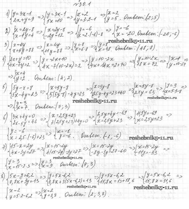 Готовая домашняя работа с ответами по Алгебре за 7 класс Мерзляк, Поляков Учебник Алгоритм успеха Углубленный уровень Вентана-граф 2019 ФГОС - §30. Решение систем линейных уравнений методом подстановки 30.1
