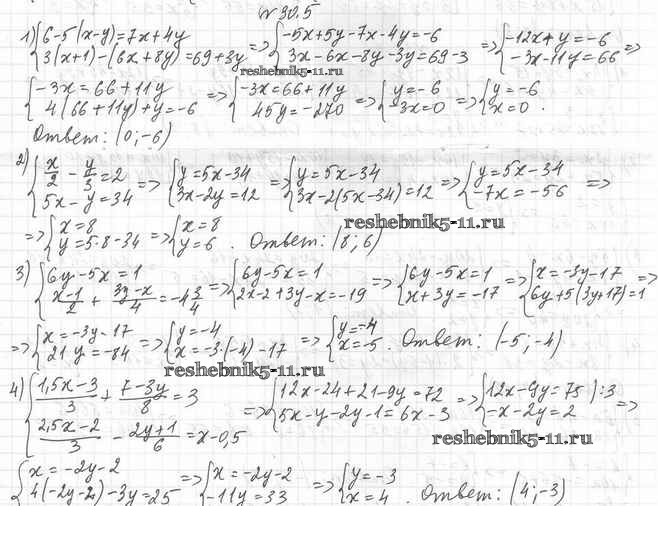 Готовая домашняя работа с ответами по Алгебре за 7 класс Мерзляк, Поляков Учебник Алгоритм успеха Углубленный уровень Вентана-граф 2019 ФГОС - §30. Решение систем линейных уравнений методом подстановки 30.5