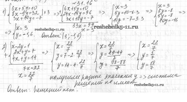 Готовая домашняя работа с ответами по Алгебре за 7 класс Мерзляк, Поляков Учебник Алгоритм успеха Углубленный уровень Вентана-граф 2019 ФГОС - §31. Решение систем линейных уравнений методом сложения 31.16
