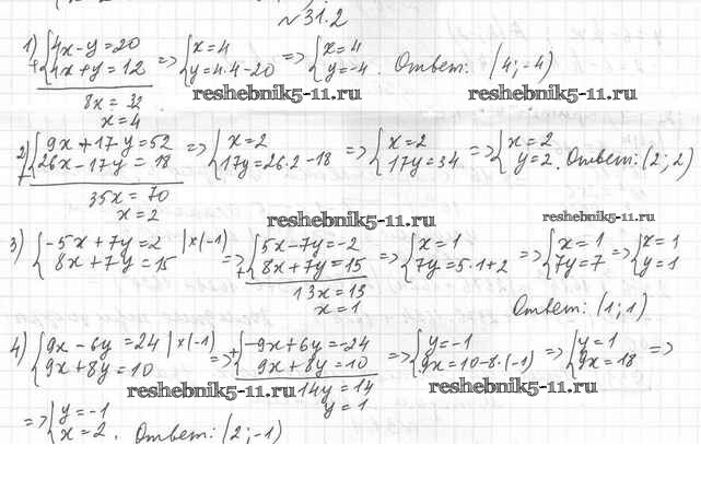 Готовая домашняя работа с ответами по Алгебре за 7 класс Мерзляк, Поляков Учебник Алгоритм успеха Углубленный уровень Вентана-граф 2019 ФГОС - §31. Решение систем линейных уравнений методом сложения 31.2