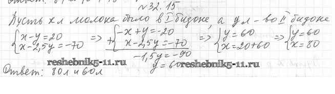 Готовая домашняя работа с ответами по Алгебре за 7 класс Мерзляк, Поляков Учебник Алгоритм успеха Углубленный уровень Вентана-граф 2019 ФГОС - §32. Решение задач с помощью систем линейных уравнений 32.15