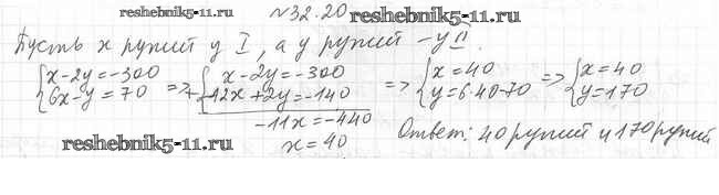 Готовая домашняя работа с ответами по Алгебре за 7 класс Мерзляк, Поляков Учебник Алгоритм успеха Углубленный уровень Вентана-граф 2019 ФГОС - §32. Решение задач с помощью систем линейных уравнений 32.20