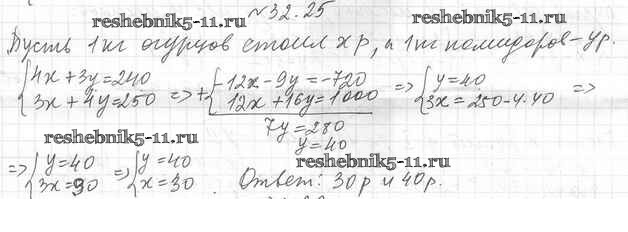 Готовая домашняя работа с ответами по Алгебре за 7 класс Мерзляк, Поляков Учебник Алгоритм успеха Углубленный уровень Вентана-граф 2019 ФГОС - §32. Решение задач с помощью систем линейных уравнений 32.25