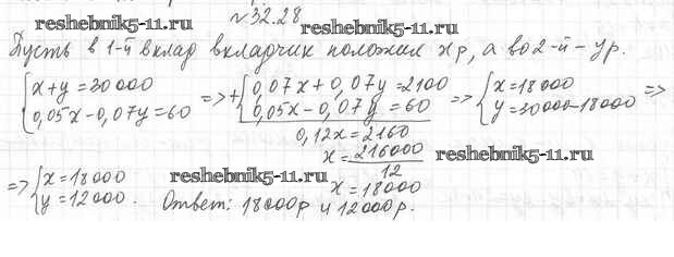 Готовая домашняя работа с ответами по Алгебре за 7 класс Мерзляк, Поляков Учебник Алгоритм успеха Углубленный уровень Вентана-граф 2019 ФГОС - §32. Решение задач с помощью систем линейных уравнений 32.28