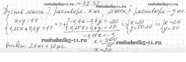 Готовая домашняя работа с ответами по Алгебре за 7 класс Мерзляк, Поляков Учебник Алгоритм успеха Углубленный уровень Вентана-граф 2019 ФГОС - §32. Решение задач с помощью систем линейных уравнений 32.32
