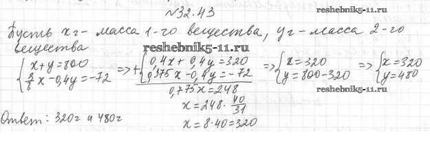 Готовая домашняя работа с ответами по Алгебре за 7 класс Мерзляк, Поляков Учебник Алгоритм успеха Углубленный уровень Вентана-граф 2019 ФГОС - §32. Решение задач с помощью систем линейных уравнений 32.43