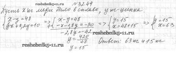 Готовая домашняя работа с ответами по Алгебре за 7 класс Мерзляк, Поляков Учебник Алгоритм успеха Углубленный уровень Вентана-граф 2019 ФГОС - §32. Решение задач с помощью систем линейных уравнений 32.44