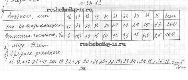 Готовая домашняя работа с ответами по Алгебре за 7 класс Мерзляк, Поляков Учебник Алгоритм успеха Углубленный уровень Вентана-граф 2019 ФГОС - §34. Начальные сведения о статистике 34.13