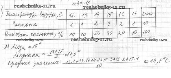 Готовая домашняя работа с ответами по Алгебре за 7 класс Мерзляк, Поляков Учебник Алгоритм успеха Углубленный уровень Вентана-граф 2019 ФГОС - §34. Начальные сведения о статистике 34.15