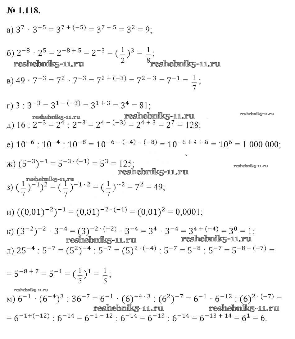 Готовая домашняя работа с ответами по Алгебре за 7 класс Арефьева, Пирютко Учебник Народная асвета 2017 - Глава 1 1.118