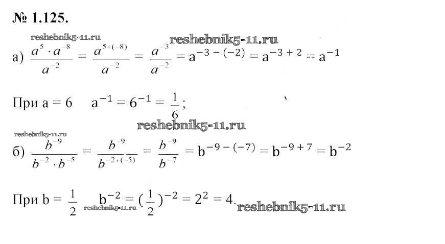 Готовая домашняя работа с ответами по Алгебре за 7 класс Арефьева, Пирютко Учебник Народная асвета 2017 - Глава 1 1.125