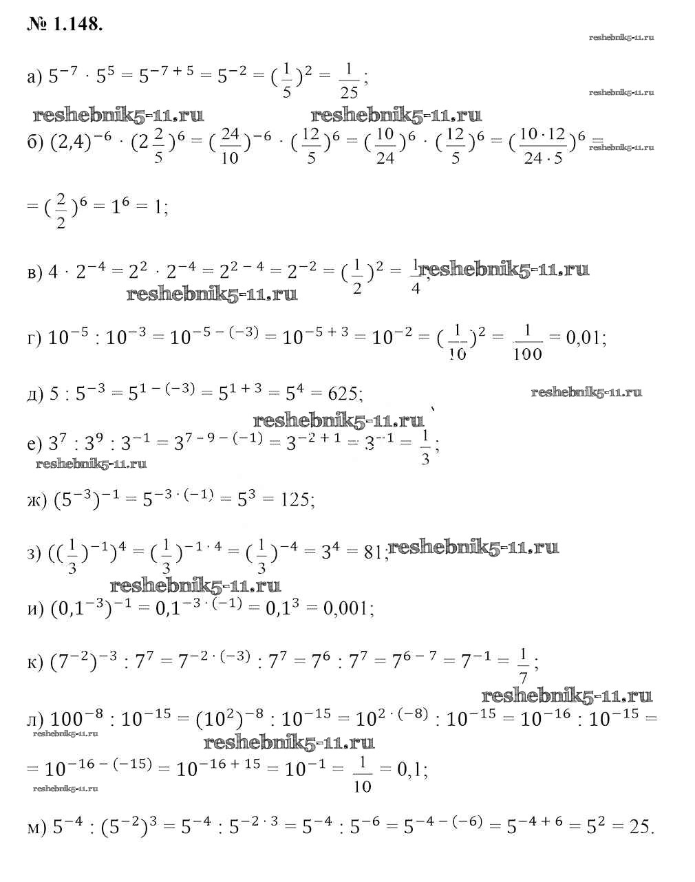 Готовая домашняя работа с ответами по Алгебре за 7 класс Арефьева, Пирютко Учебник Народная асвета 2017 - Глава 1 1.148