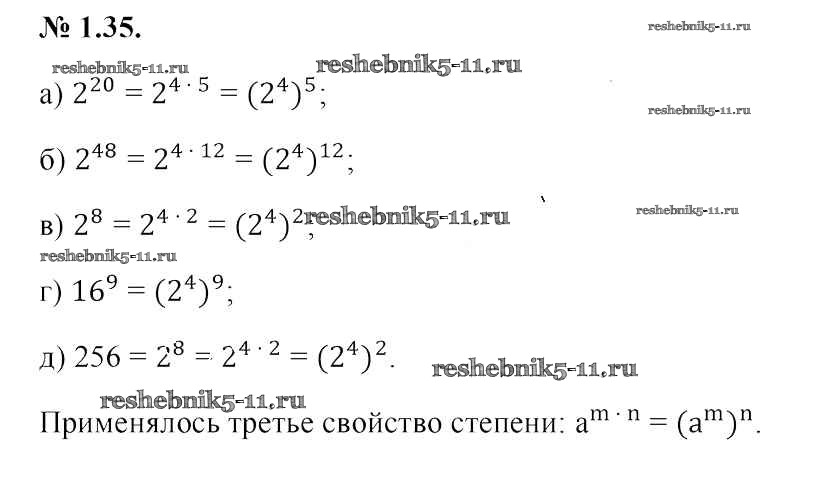 Готовая домашняя работа с ответами по Алгебре за 7 класс Арефьева, Пирютко Учебник Народная асвета 2017 - Глава 1 1.35