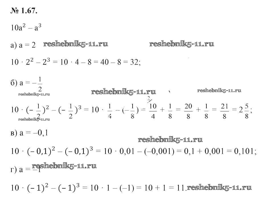 Готовая домашняя работа с ответами по Алгебре за 7 класс Арефьева, Пирютко Учебник Народная асвета 2017 - Глава 1 1.67