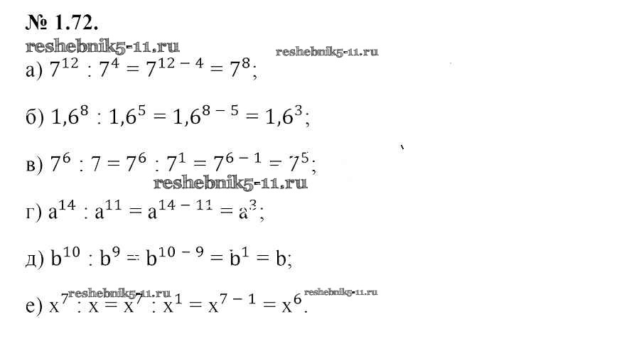 Готовая домашняя работа с ответами по Алгебре за 7 класс Арефьева, Пирютко Учебник Народная асвета 2017 - Глава 1 1.72