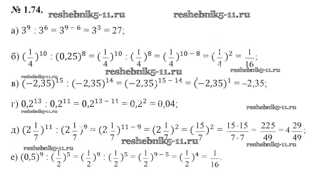 Готовая домашняя работа с ответами по Алгебре за 7 класс Арефьева, Пирютко Учебник Народная асвета 2017 - Глава 1 1.74
