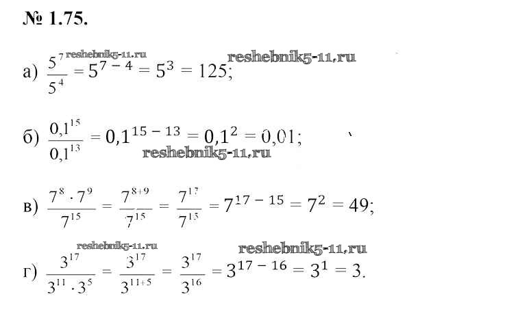 Готовая домашняя работа с ответами по Алгебре за 7 класс Арефьева, Пирютко Учебник Народная асвета 2017 - Глава 1 1.75