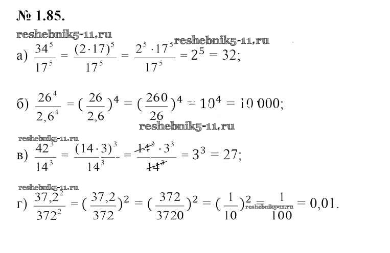 Готовая домашняя работа с ответами по Алгебре за 7 класс Арефьева, Пирютко Учебник Народная асвета 2017 - Глава 1 1.85
