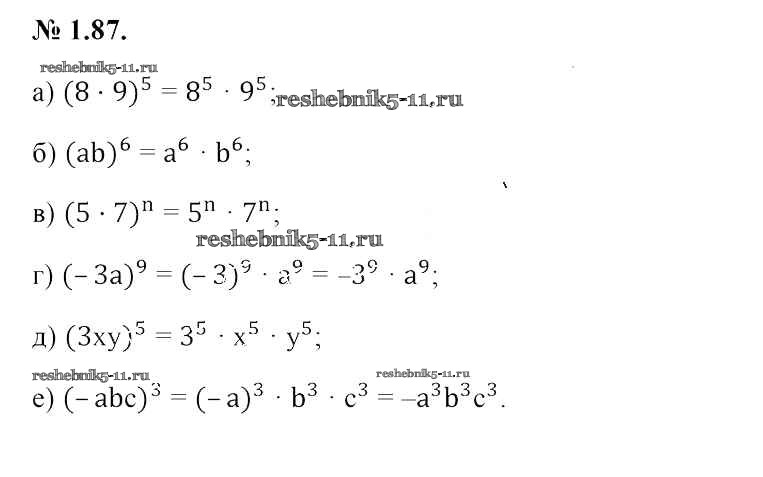 Готовая домашняя работа с ответами по Алгебре за 7 класс Арефьева, Пирютко Учебник Народная асвета 2017 - Глава 1 1.87