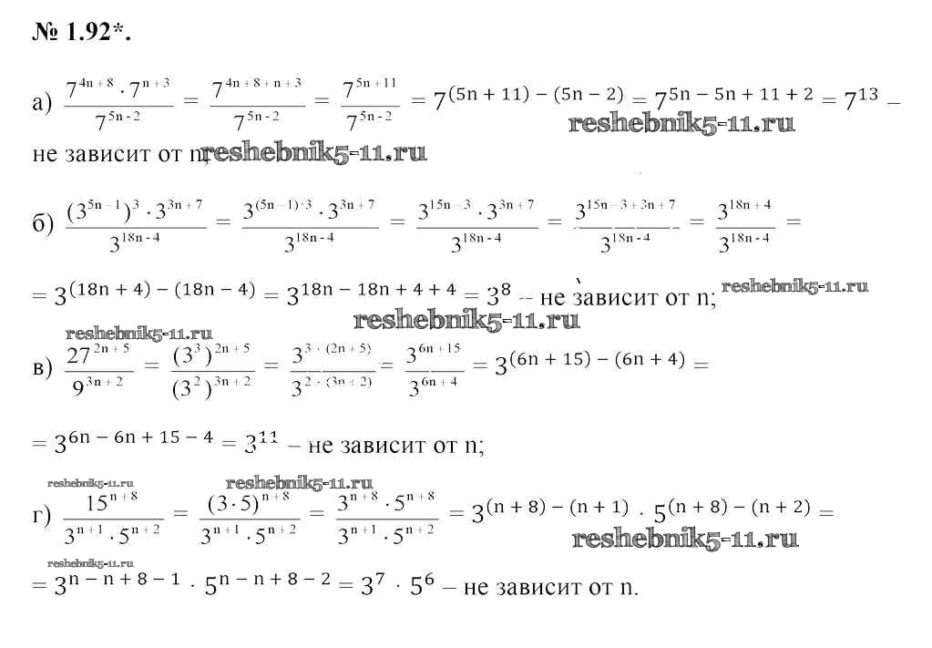 Готовая домашняя работа с ответами по Алгебре за 7 класс Арефьева, Пирютко Учебник Народная асвета 2017 - Глава 1 1.92