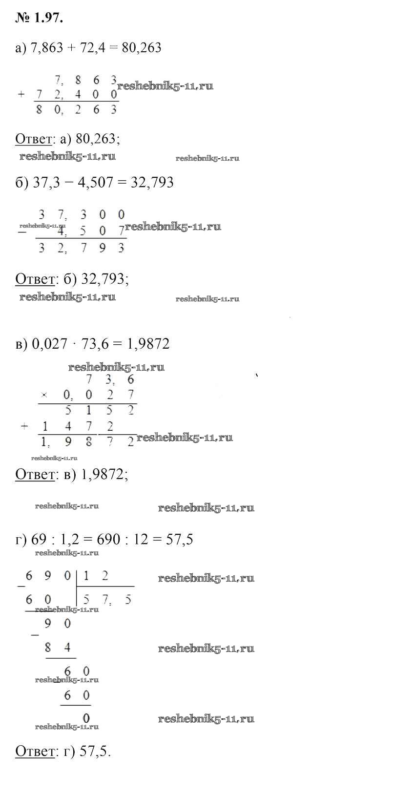 Готовая домашняя работа с ответами по Алгебре за 7 класс Арефьева, Пирютко Учебник Народная асвета 2017 - Глава 1 1.97