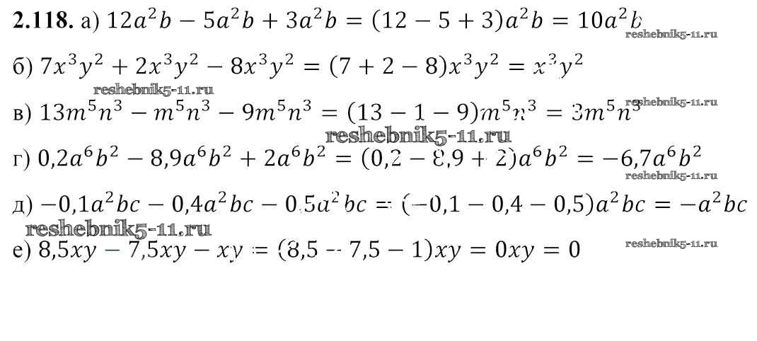 Готовая домашняя работа с ответами по Алгебре за 7 класс Арефьева, Пирютко Учебник Народная асвета 2017 - Глава 2 2.118