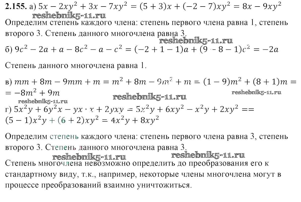 Готовая домашняя работа с ответами по Алгебре за 7 класс Арефьева, Пирютко Учебник Народная асвета 2017 - Глава 2 2.155