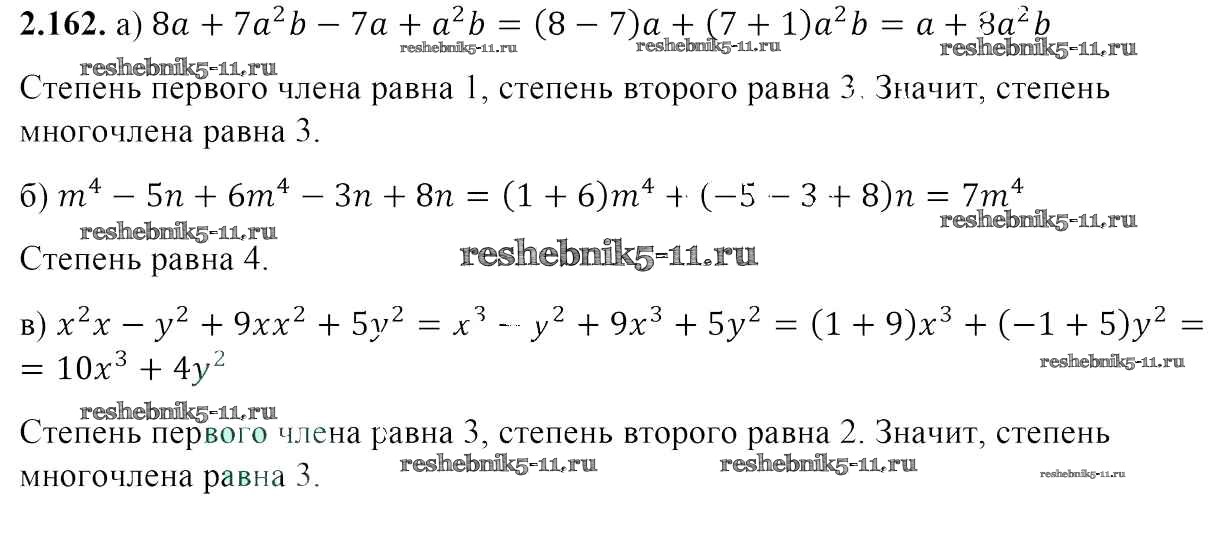 Готовая домашняя работа с ответами по Алгебре за 7 класс Арефьева, Пирютко Учебник Народная асвета 2017 - Глава 2 2.162