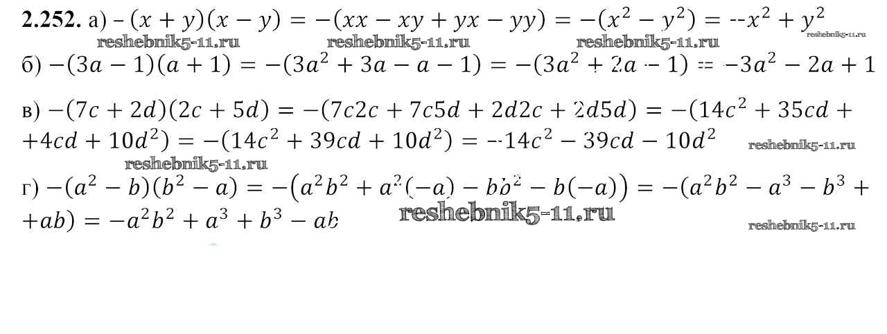 Готовая домашняя работа с ответами по Алгебре за 7 класс Арефьева, Пирютко Учебник Народная асвета 2017 - Глава 2 2.252