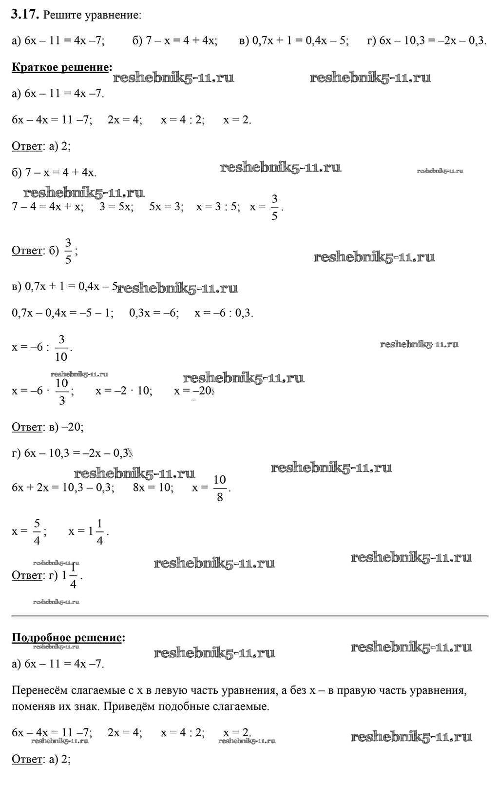 Готовая домашняя работа с ответами по Алгебре за 7 класс Арефьева, Пирютко Учебник Народная асвета 2017 - Глава 3 3.17