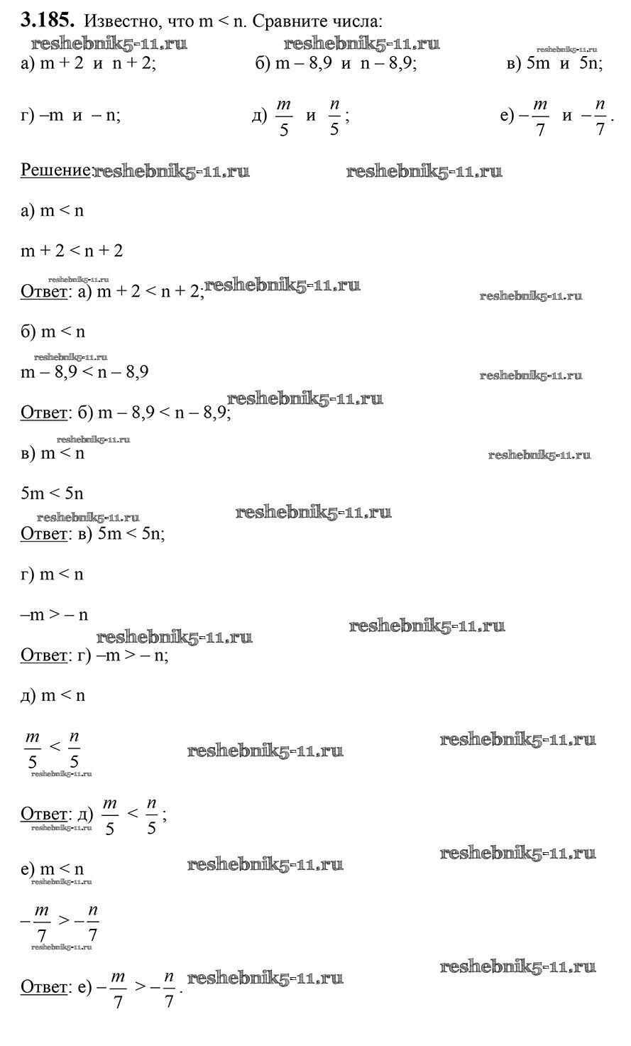 Готовая домашняя работа с ответами по Алгебре за 7 класс Арефьева, Пирютко Учебник Народная асвета 2017 - Глава 3 3.185