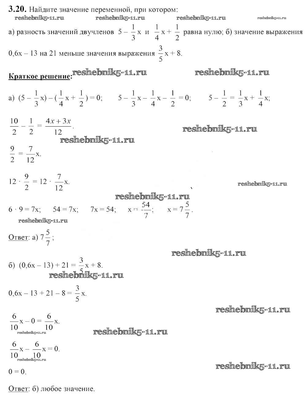 Готовая домашняя работа с ответами по Алгебре за 7 класс Арефьева, Пирютко Учебник Народная асвета 2017 - Глава 3 3.20